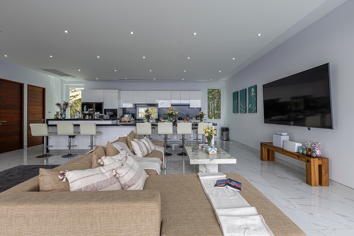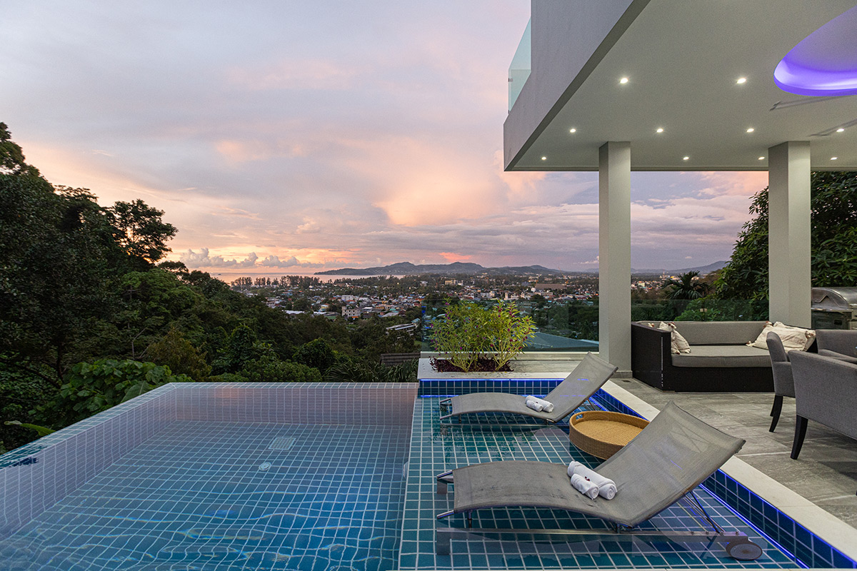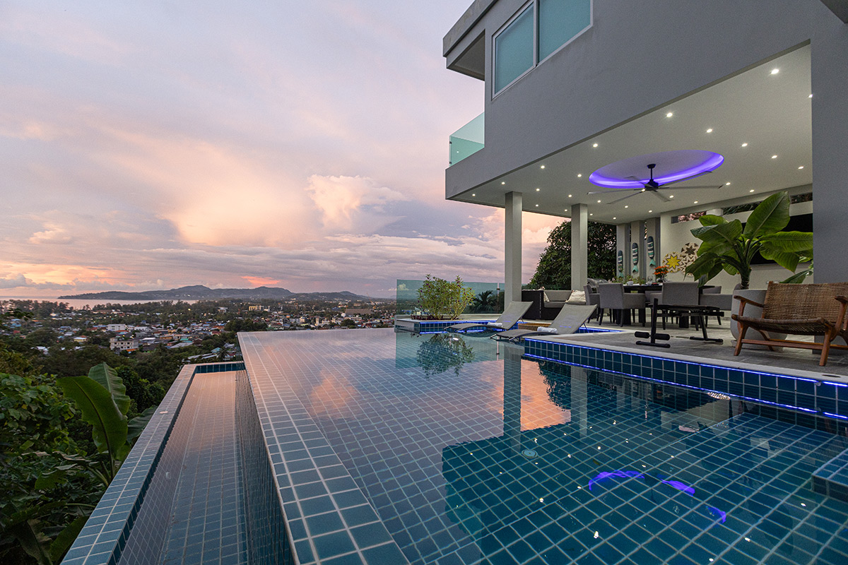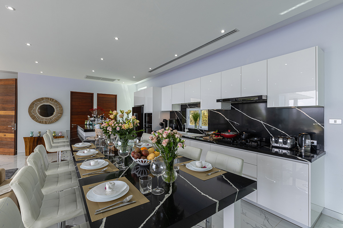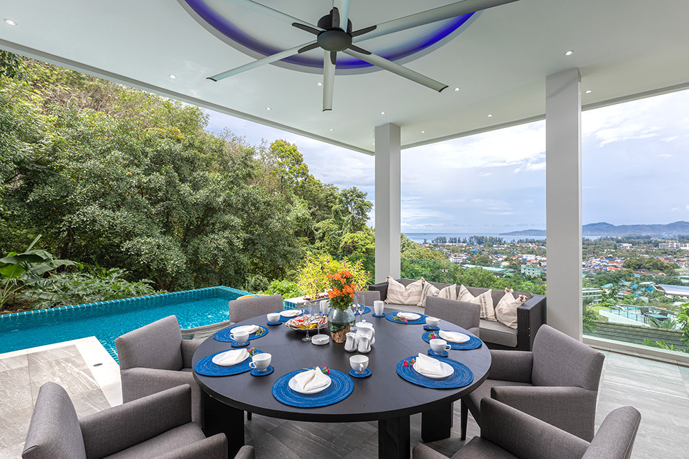 The villas feature a fully-equipped kitchen, as well as indoor and outdoor dining areas with a spectacular 180-degree view of Bang Tao and the ocean.